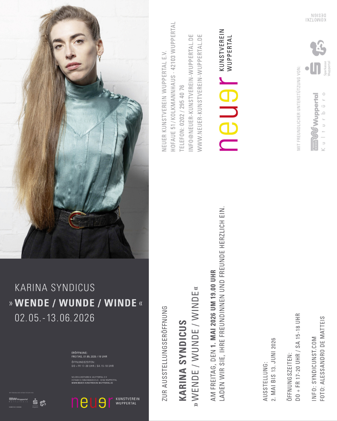 Karina Syndicus (*1988) arbeitet an der Schnittstelle von Performance, Konzeptkunst und medialen wie skulpturalen Ausdrucksformen. Nach ihrem Studium zur Schauspielerin und zur staatlich anerkannten Diplomclownin mit dem Schwerpunkt Mime Corporel entwickelte sie eine künstlerische Praxis, in der der Körper häufig den Ausgangspunkt bildet. Performance versteht sie dabei nicht als abgeschlossene Form, sondern als Prozess, aus dem sich Fotografien, Video- und Audioarbeiten, Collagen oder plastische Arbeiten entwickeln.