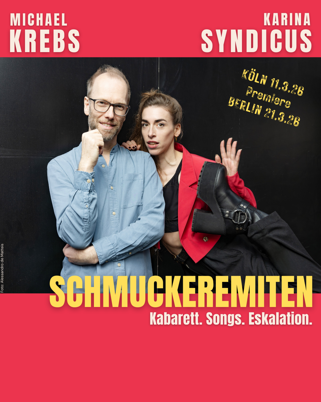 Schmuckeremiten ist das erste Duoprogramm von Karina Syndicus und Michael Krebs. Ein Abend voll Körper, Musik, Wort, kluger Pointen und überraschender Lösungen.