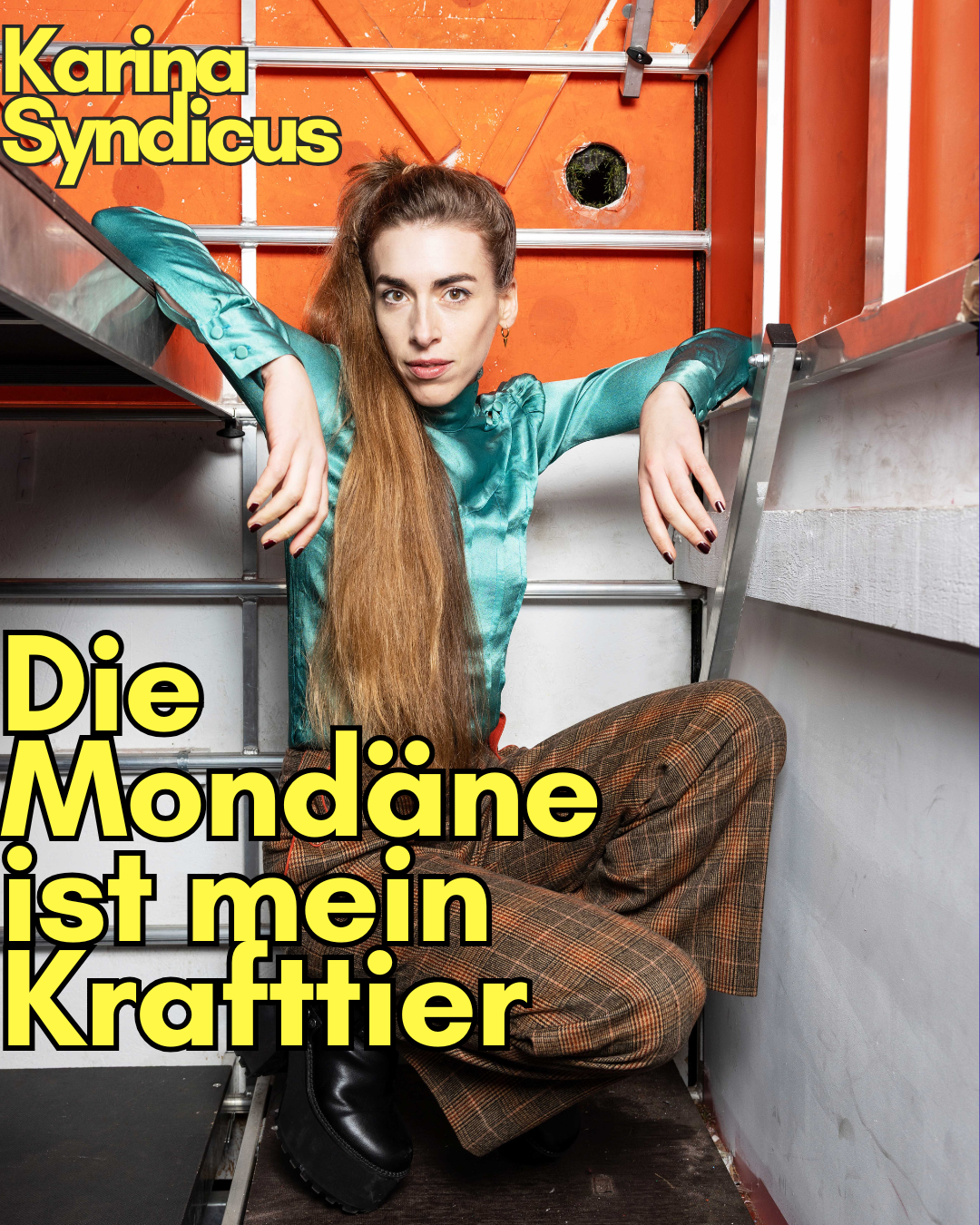 Eine Gesellschaft, die in gnadenloser Ignoranz zuschaut, wie die Welt untergeht und den ganzen Prozess in 30-sekündigen von Nonsens triefenden Videos auf dem Smartphone beobachtet? Klingt absurd, aber wir sind alle live dabei. Schön, dass wir uns in einer Zeit wähnen dürfen, in der die Mittel zu handeln lächerlich knapp sind. Karina Syndicus tut auch nichts dagegen und spielt geschickt die interessierte Beobachterin des Geschehens, nur um sich anschließend aus weltrettungsvermeidungsstrategischen Gründen unsterblich in verstorbene Literaten zu verlieben oder sich mit den Schmelzpunkten verschiedener Metalle zu beschäftigen und sich ihre Schachtelsätze nicht vom Patriarchat wegnehmen zu lassen. Auf der Bühne präsentiert sie in Worten und Körpern dadaistisch bis philosophisch Texte, Performance, Konzepte und auf Wunsch belegte Brötchen.